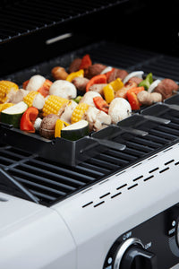 Lorsque vous voulez associer différents ingrédients, les piquer ensemble sur une brochette est une bonne idée. Veillez à choisir des ingrédients nécessitant à peu près le même temps de cuisson. Les poivrons cuiront beaucoup plus vite que les carottes, par exemple. Utiliser des brochettes est également une façon idéale de préparer de petits ingrédients qui pourraient sinon glisser sous la grille lors du barbecue. En piquant les ingrédients sur une pique, vous êtes assurés que ceux-ci cuisent uniformément et cela vous facilite la manipulation : pas besoin de cafouiller, vous les retournez toutes rapidement et proprement. Vous avez un total contrôle sur la cuisson de vos grillades. De plus, il est très facile de nettoyer un porte-brochettes. En général, vous pouvez facilement démonter le support à brochettes et le nettoyer complètement avec une éponge et un peu d'eau tiède. Il suffit de bien le sécher et votre porte-brochettes est prêt pour la prochaine utilisation !
